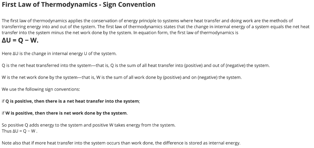 Solved First Law Of Thermodynamics Sign Convention The Chegg Com